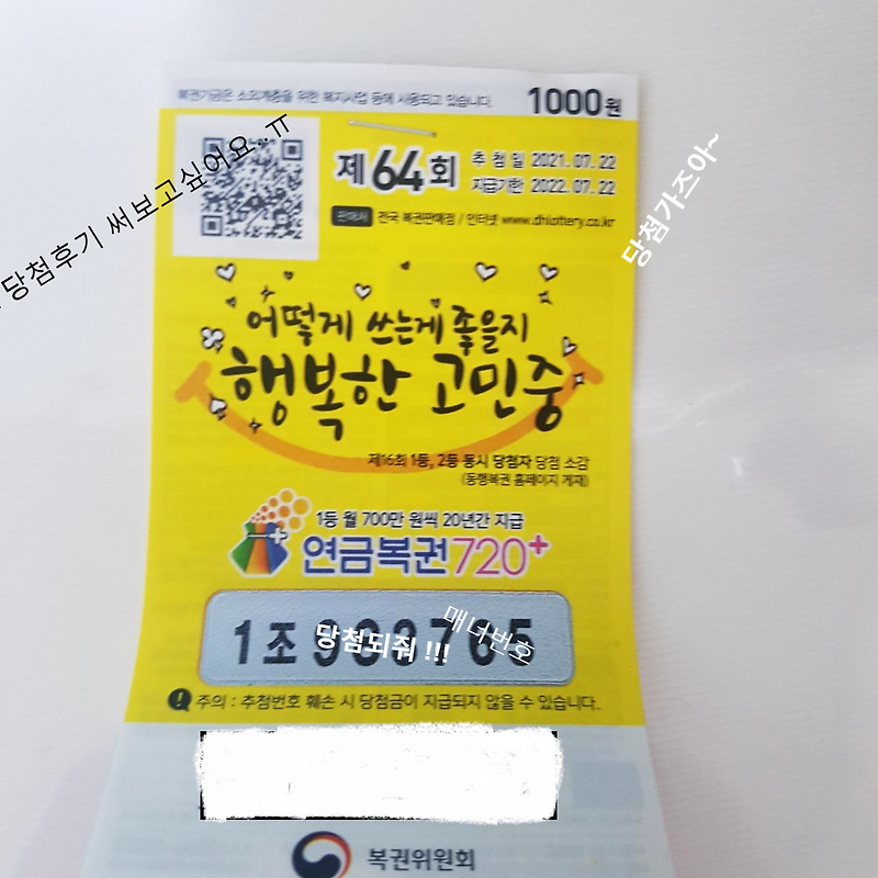 연금복권 720 가격은 1000원으로, 연금복권 720 구매방법은 인터넷과 오프라인, 모두 가능하답니다.